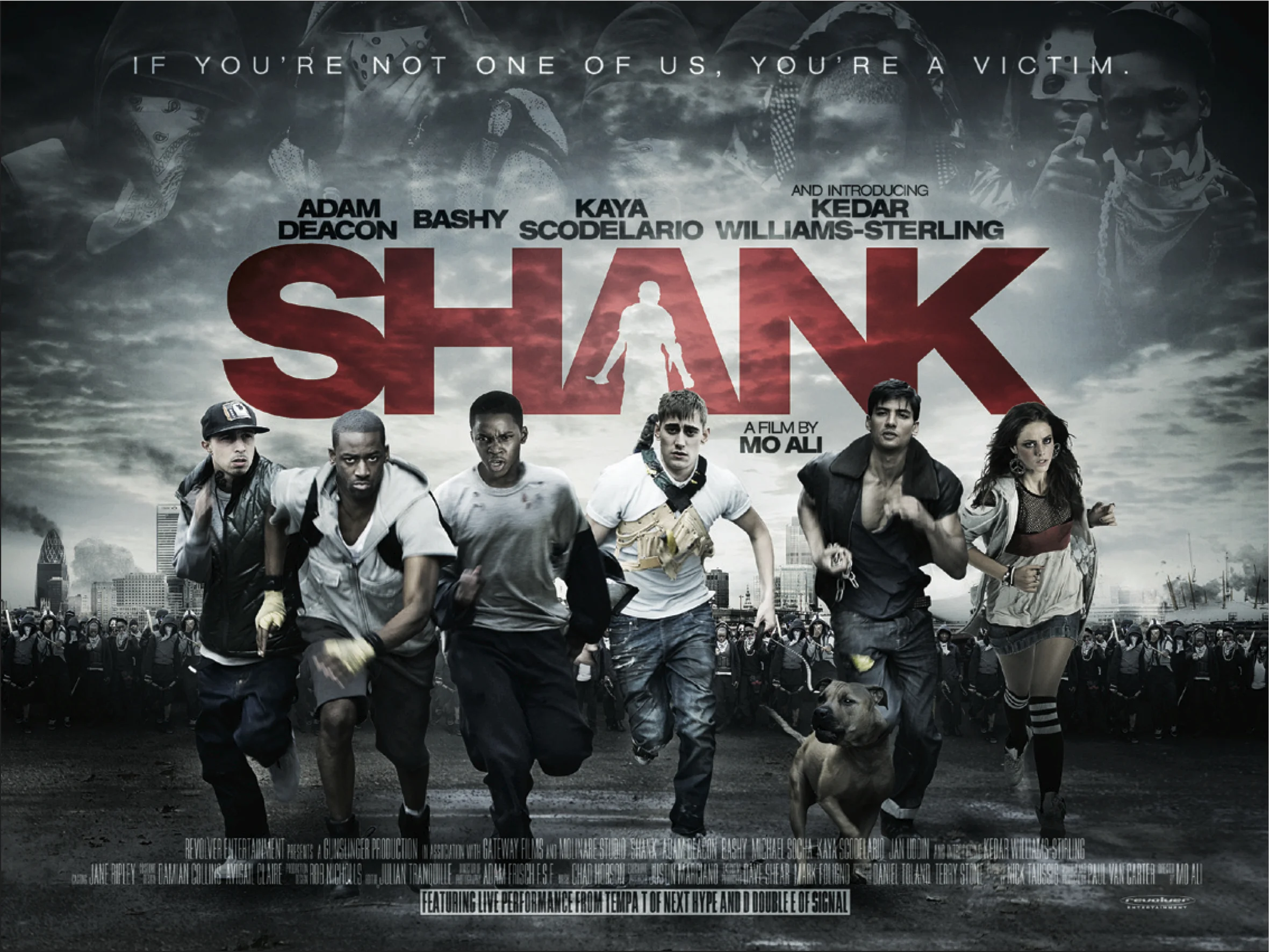Featuring hot grime artist Bashy, Adam Deacon (KiDULTHOOD, AdULTHOOD) and Kaya Scodelario (Skins), and exclusive live performances from Tempa T and D Double E, Shank is an adrenaline-fuelled look at the way we could be in 2015, and the first must-see film of 2010.